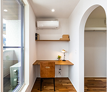 2階には家族が落ち着いて過ごせるプライベート空間を確保し、主寝室にはリモートワークに対応できる書斎スペースを併設。コンパクトながらも集中できる設計となっており、仕事や趣味の時間を快適に過ごせる空間を実現しました。リモートワークが一般化する中で、住まいの中に適度なプライバシーと機能性を確保する工夫が施されています。