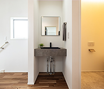 また2階の洗面スペースには、デザイン性の高いスタイリッシュなカウンター型洗面台を採用。ホテルライクな洗練された雰囲気を演出しながら、機能性にもこだわった仕上がりとなっています。