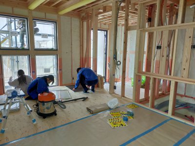 見学会に向け、私たちも会場となる現場の設営をしてまいりました。